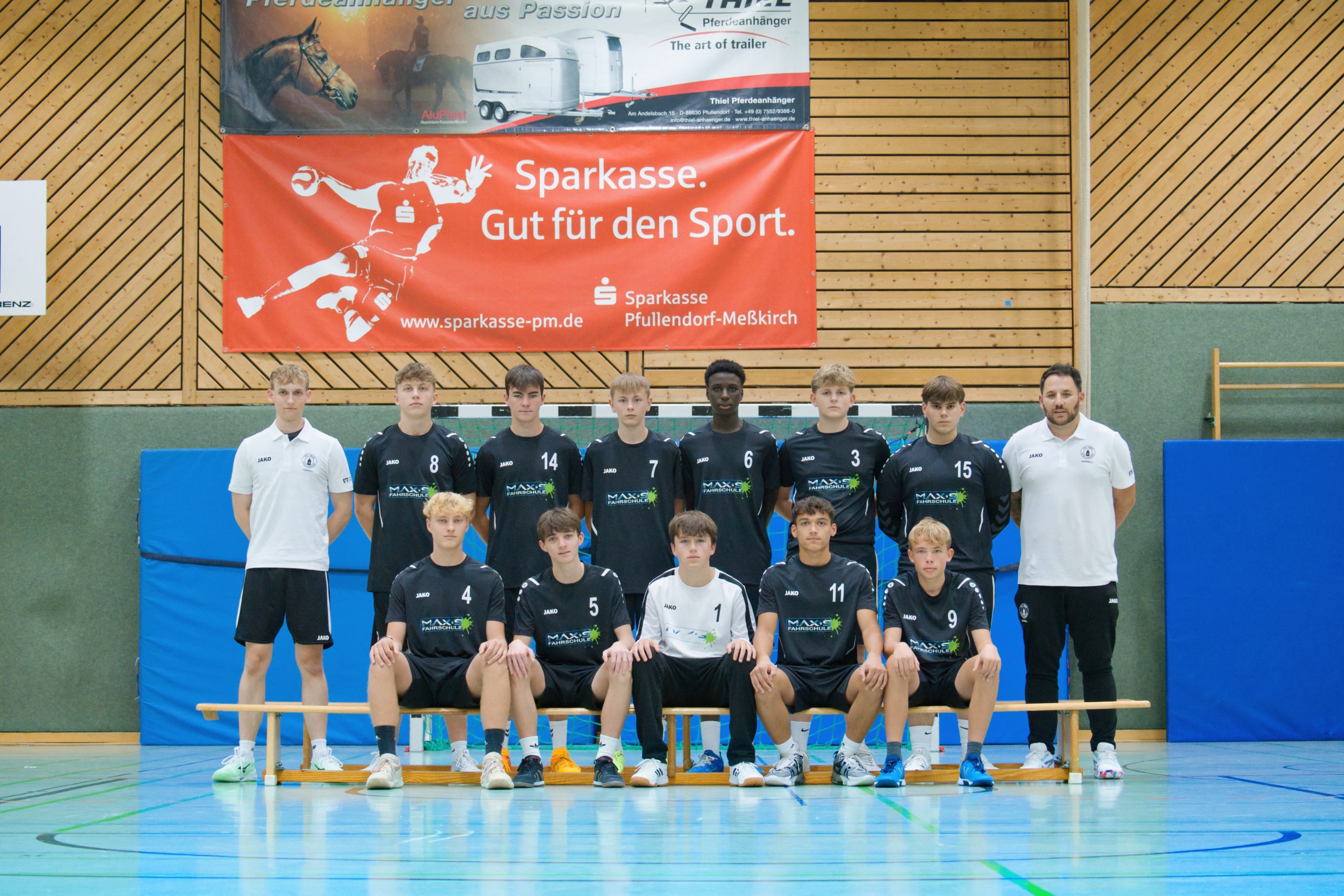 HINTERE REIHE V.L.: Erik Breichler (Trainer), Dennis Zakharov, Levin Strohmaier, Jörn Drechsler, Ibrahima Sama, Moritz Kletti, Eduard Dyck, Mathias Spoo (Trainer)